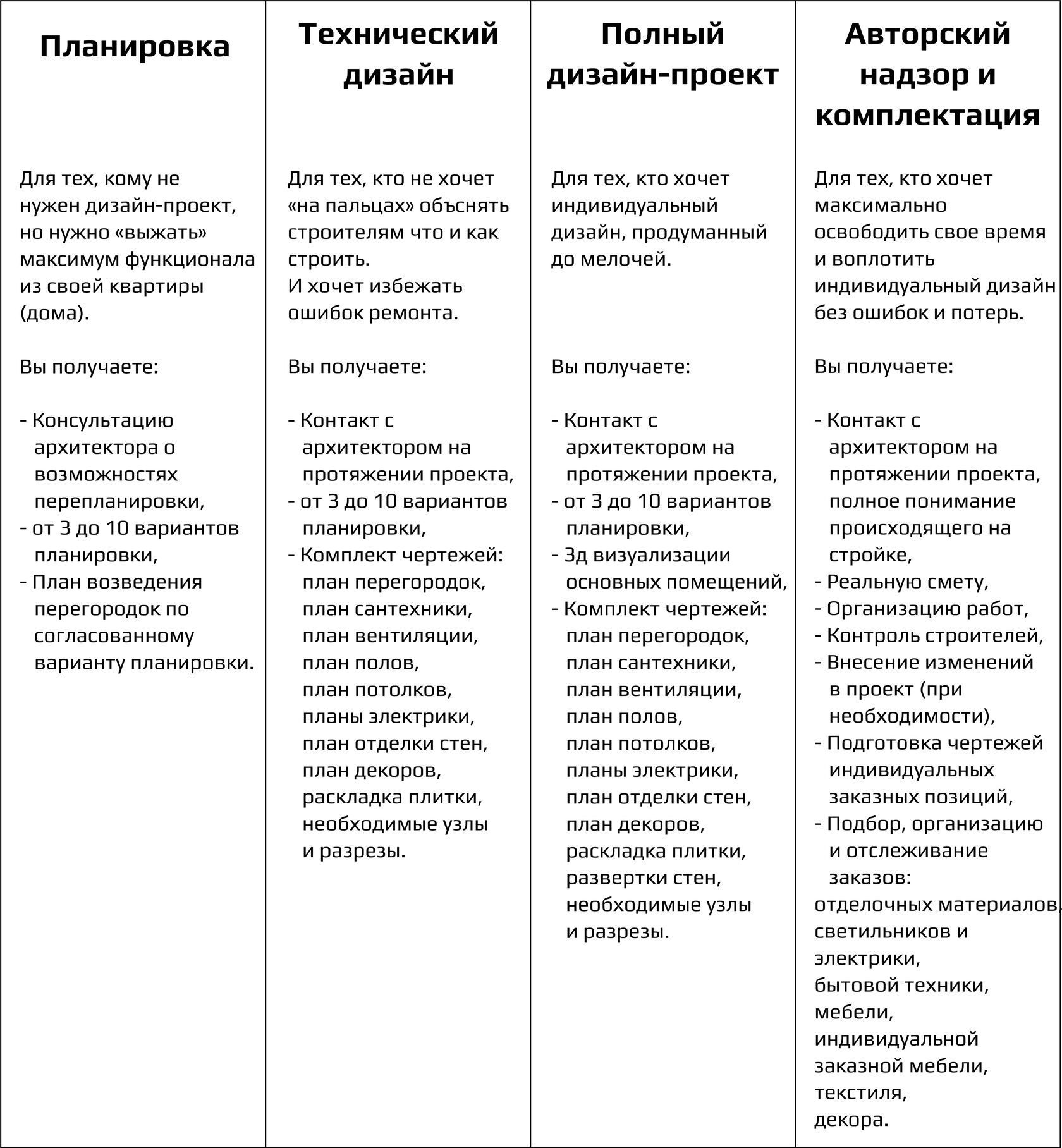- Вы хотите перепланировать свое жилье. В таком случае однозначно стоит обратиться к профессионалу, который предложит больше разных вариантов, чем Вы могли бы придумать сами. Пояснит законность этих вариантов, ньюансы разводки инженерных сетей. И то, как планировка будет влиять на бюджет ремонта.